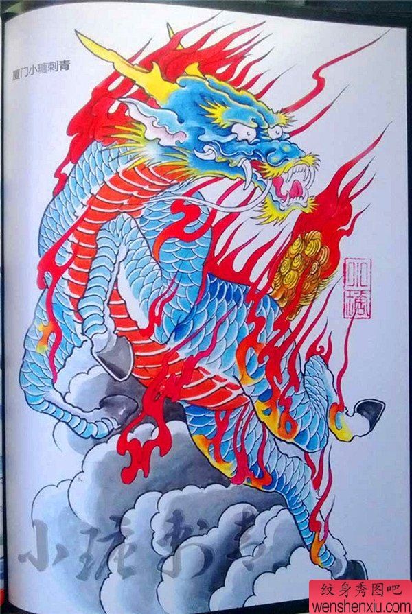 龙纹身手稿_一组老传统黑灰龙手稿纹身图案