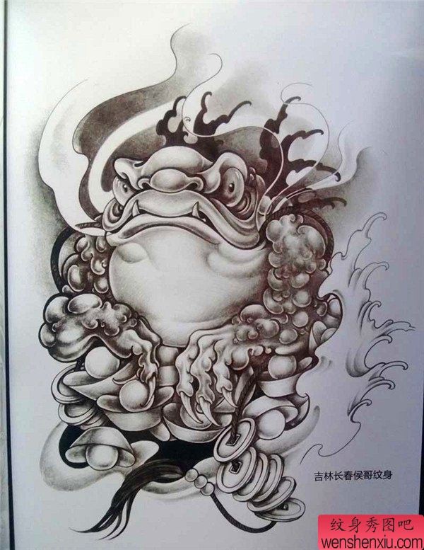 龙纹身手稿_一组老传统黑灰龙手稿纹身图案