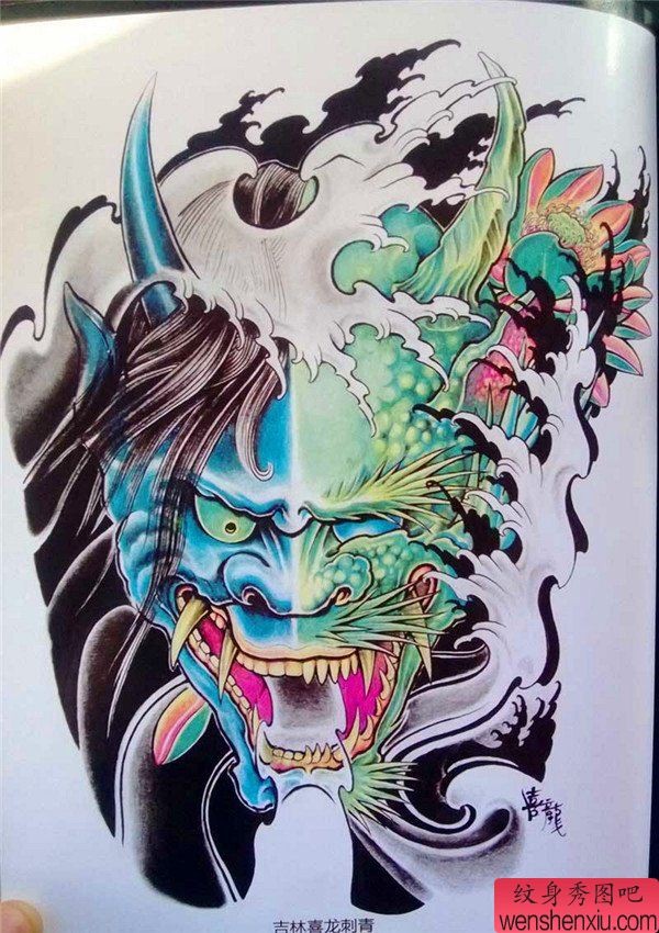 能面万媚纹身手稿_52张日式能剧面具纹身手稿图案素材欣赏
