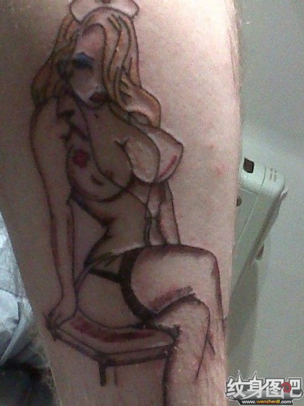 金发红唇,黑丝爆乳超性感小护士纹身图案