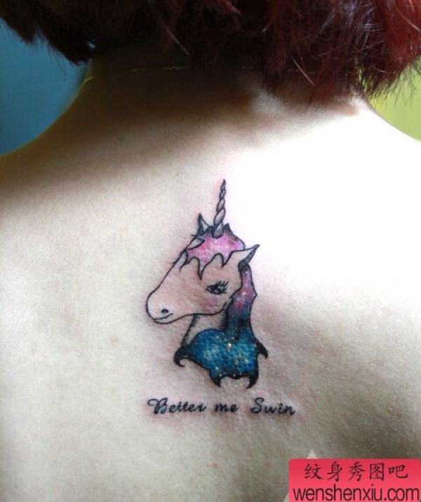 背部卡通独角兽纹身图案