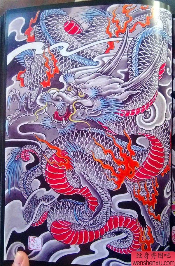 龙纹身手稿_一组老传统黑灰龙手稿纹身图案