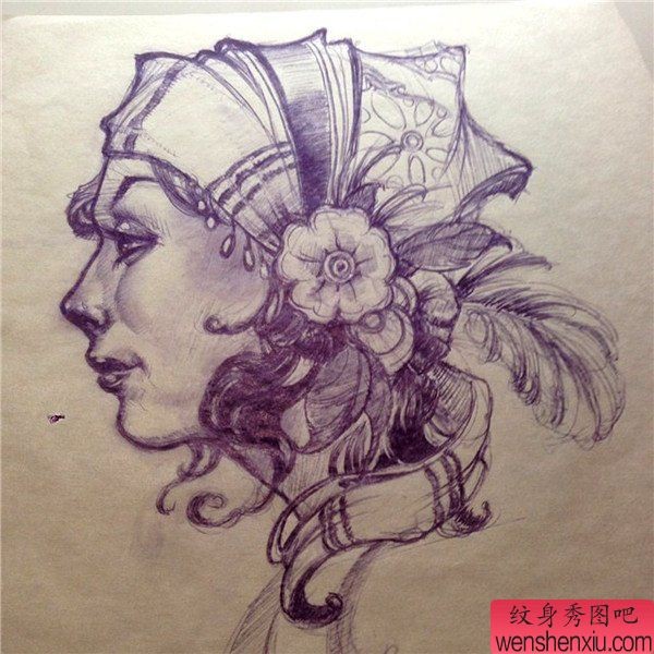 能面万媚纹身手稿_52张日式能剧面具纹身手稿图案素材欣赏