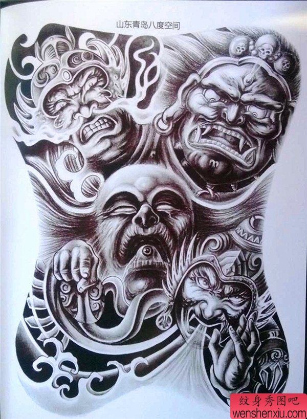 能面万媚纹身手稿_52张日式能剧面具纹身手稿图案素材欣赏