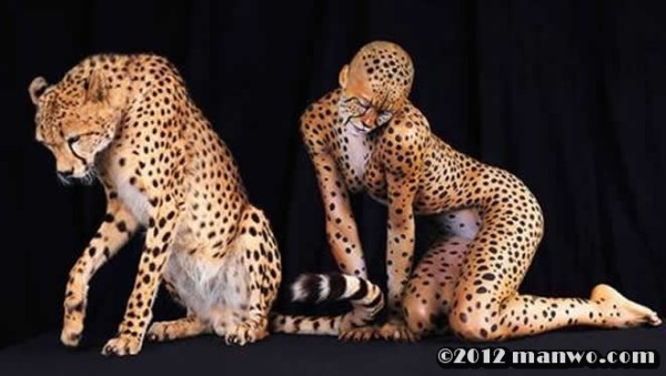 美女斑点纹身与老虎的艺术展示