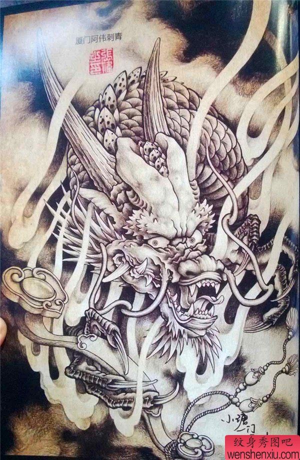 龙纹身手稿_一组老传统黑灰龙手稿纹身图案