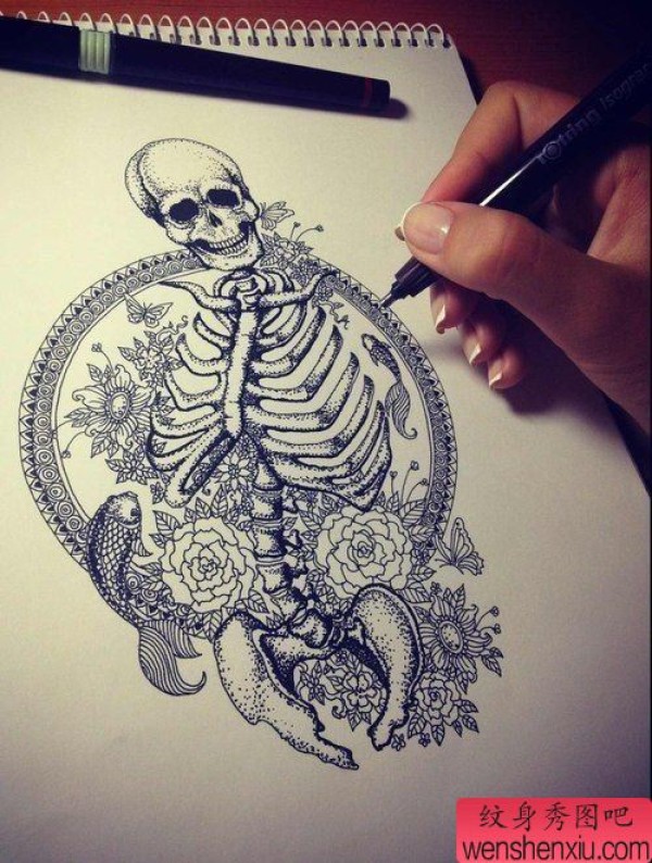 双鱼座纹身手稿_45张十二星座之双鱼手稿纹身图案