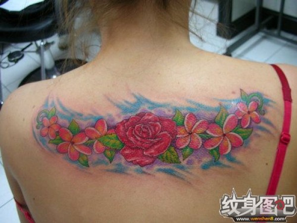 后肩唯美花藤英文图案图片_植物纹身图案大全_纹身图吧