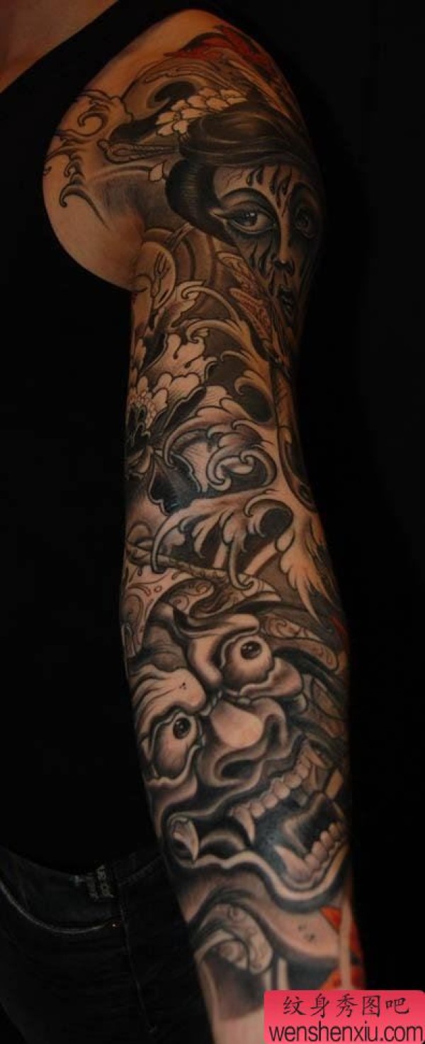 手部包臂般若文身作品