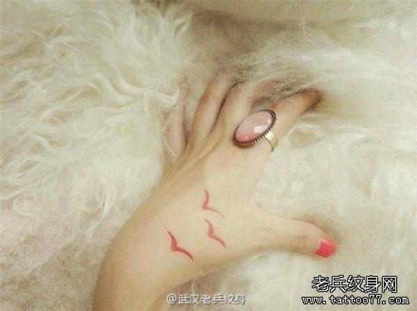 手部海鸥文身作品