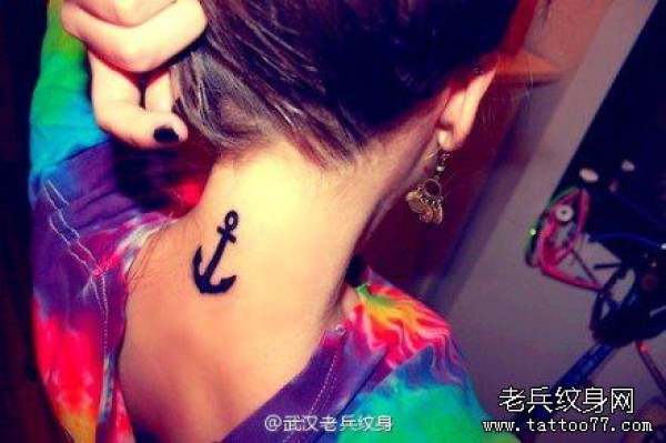 后颈部纹身小图--9张女生脖子后颈处的简约纹身图案