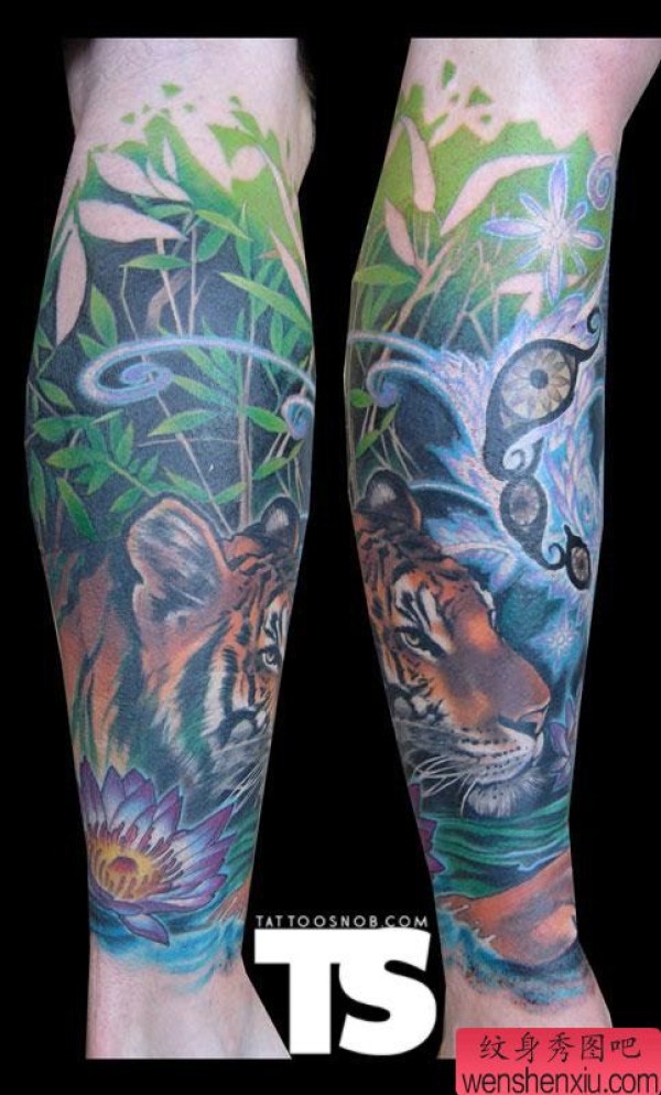 腿部一张包腿虎文身作品
