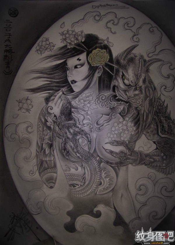 能面万媚纹身手稿_52张日式能剧面具纹身手稿图案素材欣赏