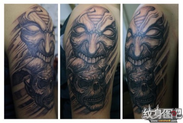 能面万媚纹身手稿_52张日式能剧面具纹身手稿图案素材欣赏