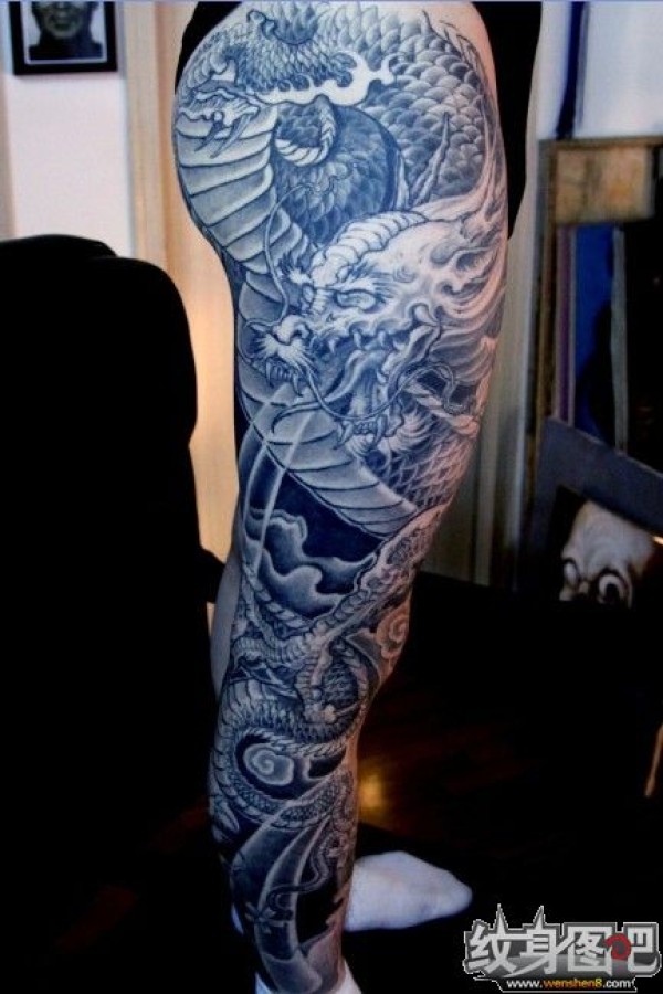 龙纹身手稿_一组老传统黑灰龙手稿纹身图案