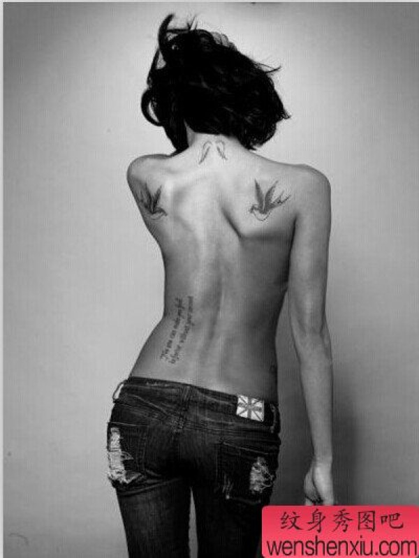 纹身图吧分享一张背部双飞燕文身作品