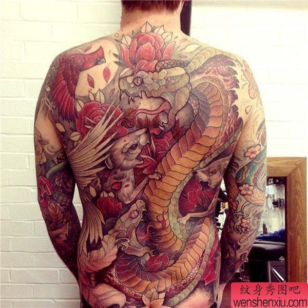 纹身图吧分享一张满背创意蛇文身作品