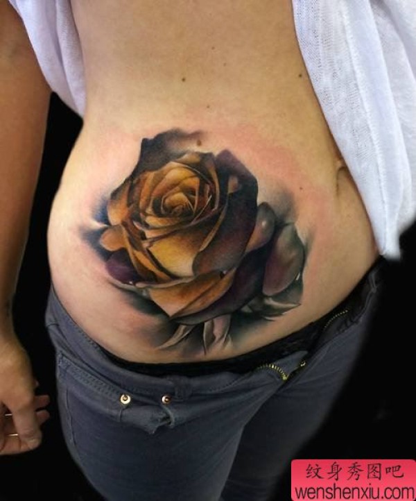 女性腰部莲花花纹刺青_腰部纹身图案大全_纹身图吧