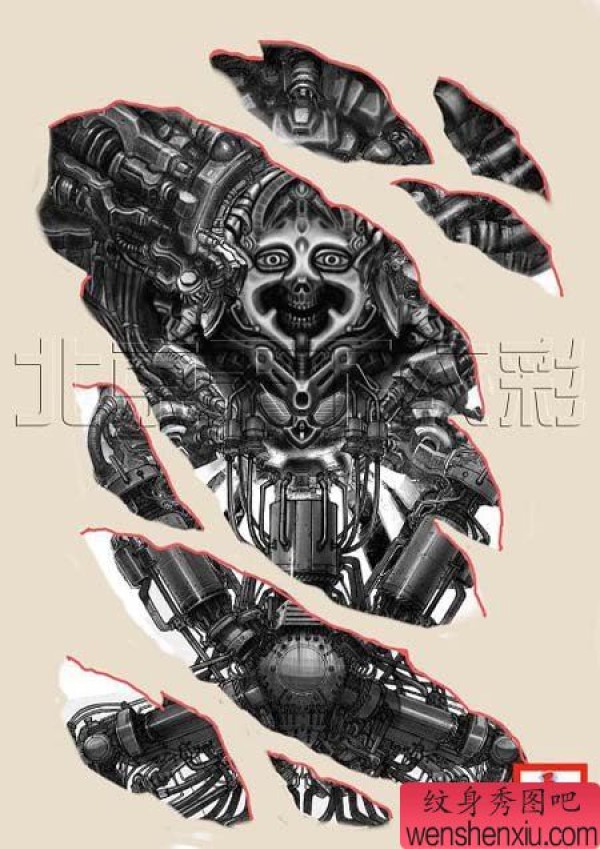 创意的机械文身手稿作品