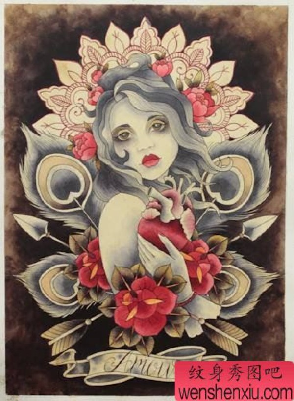 传统艺妓般若纹身图案手稿
