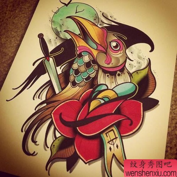 创意彩色school风格文身作品