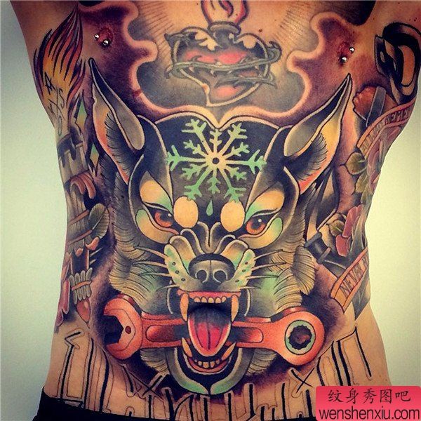 胸部狼头school欧美纹身图案
