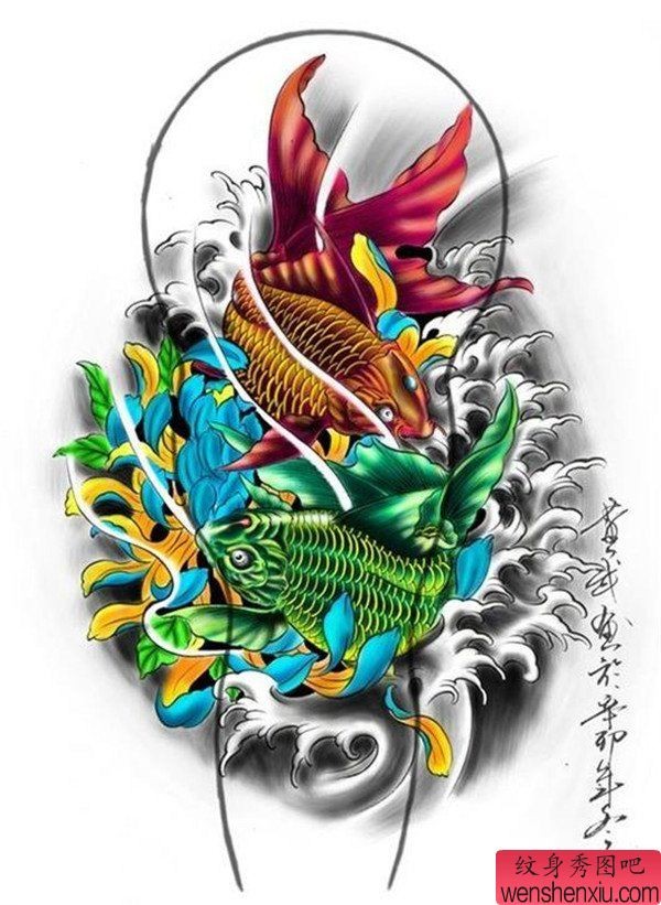 双鱼座纹身手稿_45张十二星座之双鱼手稿纹身图案