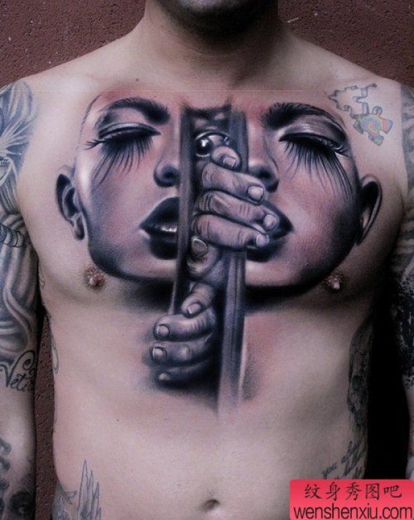 男生胸前经典的女性生殖器官纹身图案_胸部纹身图案大全_纹身图吧