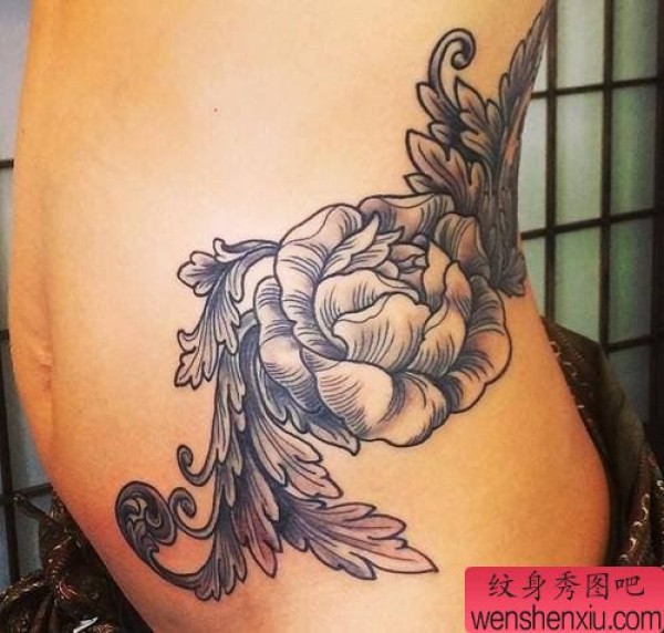 女性腰部莲花花纹刺青_腰部纹身图案大全_纹身图吧