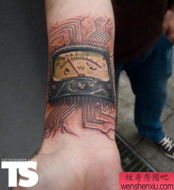 手部一张创意电表文身作品