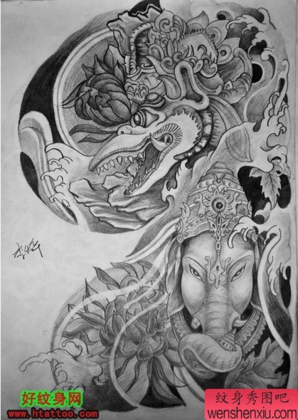 《龙凤呈祥》系列纹身手稿高清大图 72P