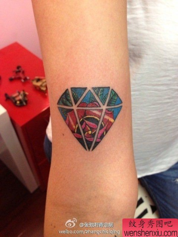 纹身图吧分享一张手臂钻石文身作品