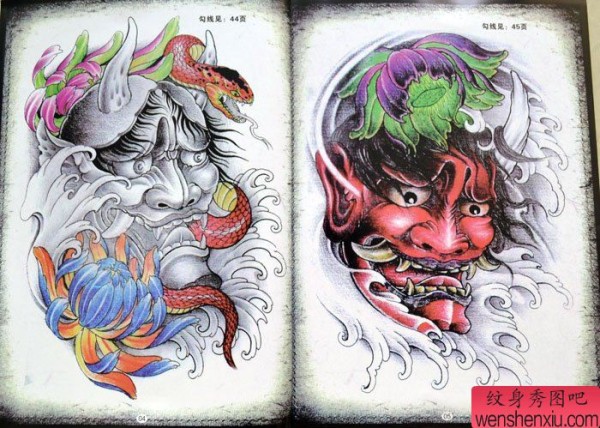 能面万媚纹身手稿_52张日式能剧面具纹身手稿图案素材欣赏