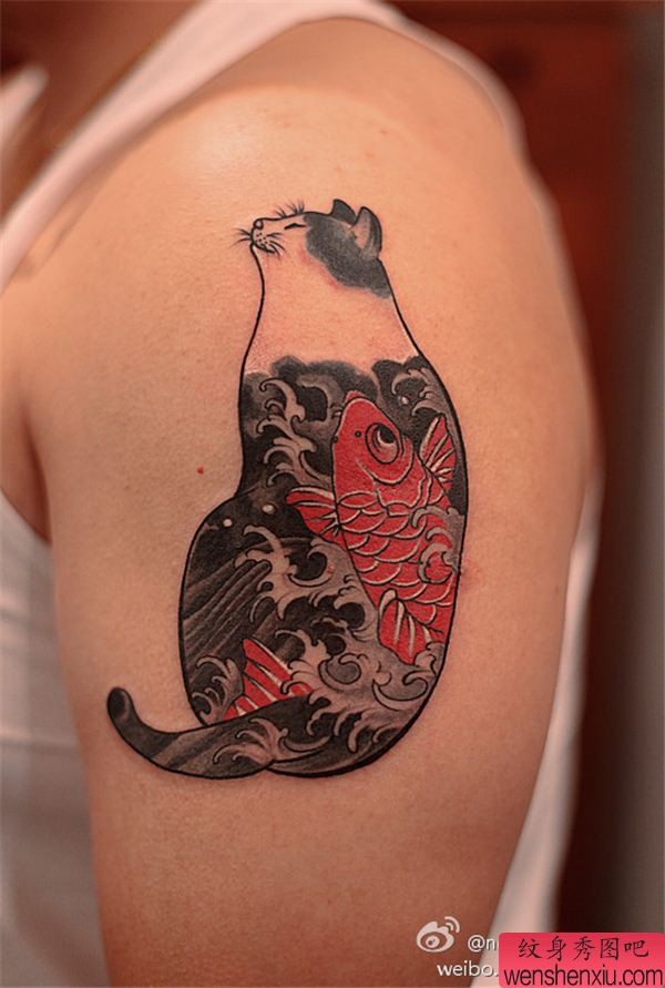 大臂猫咪文身作品