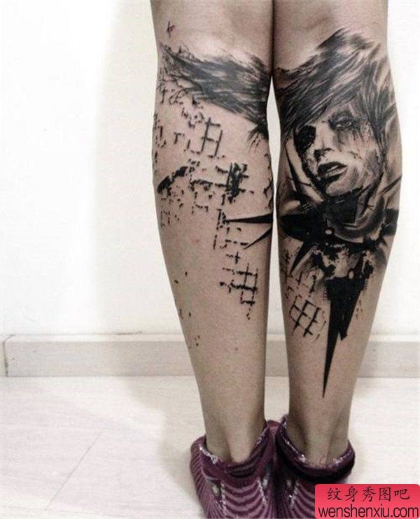 花腿纹身--一组大黑腿纹身图案作品欣赏