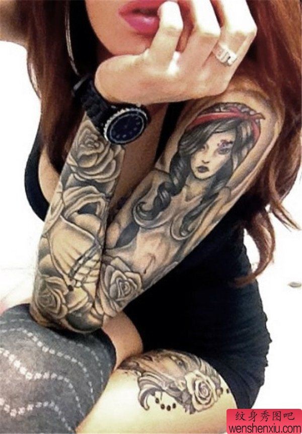 女性肩部肖像刺青_肖像纹身图案大全_纹身图吧
