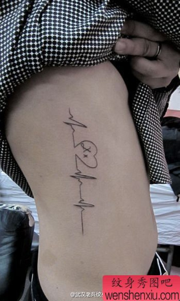 女性侧腰心电图文身作品