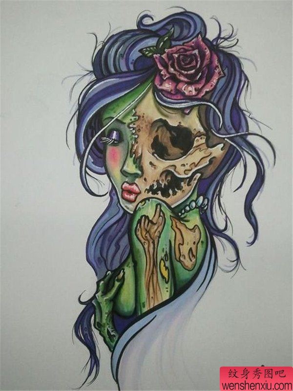 女性肩部肖像刺青_肖像纹身图案大全_纹身图吧