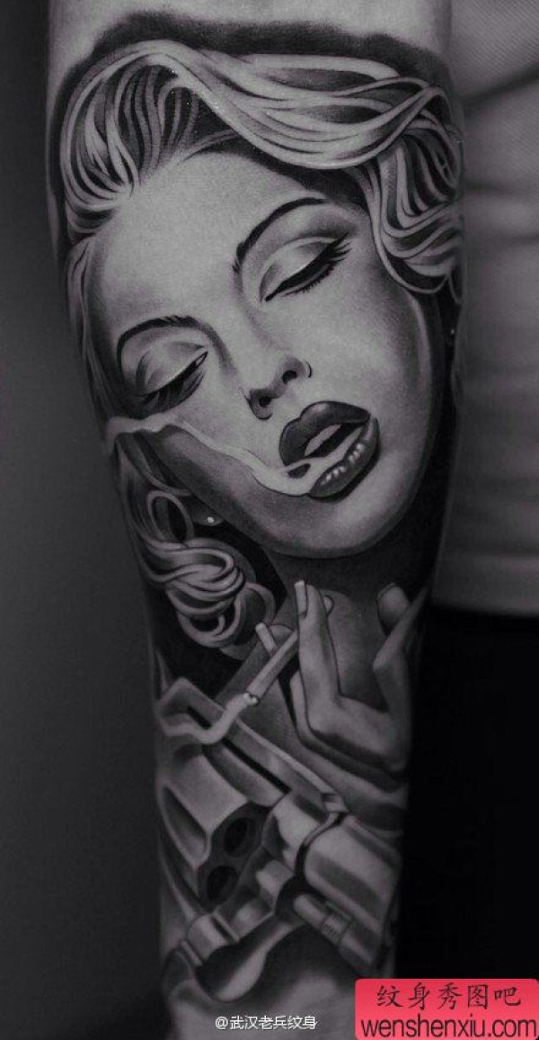女性肩部肖像刺青_肖像纹身图案大全_纹身图吧