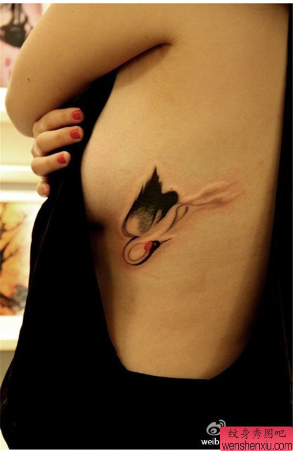 分享一款腰部时尚性感的蝶恋花纹身图案_腰部纹身图案大全_纹身图吧