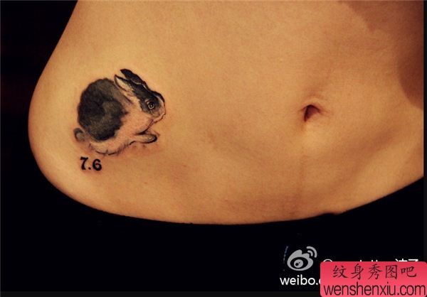 腰部创意水墨兔子文身作品