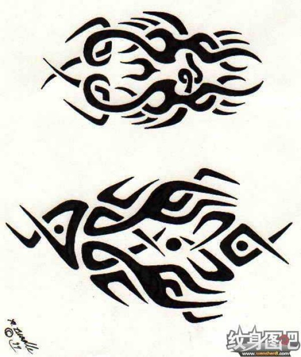双鱼座纹身手稿_45张十二星座之双鱼手稿纹身图案