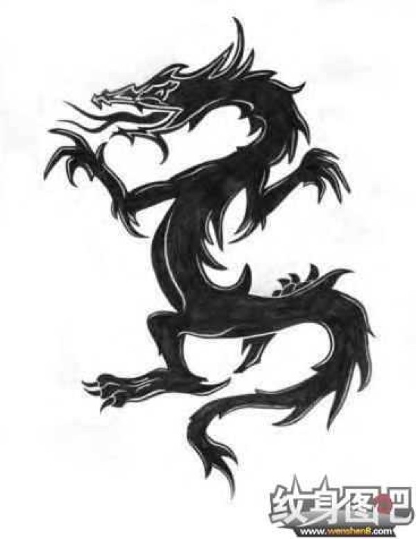 龙纹身手稿_一组老传统黑灰龙手稿纹身图案