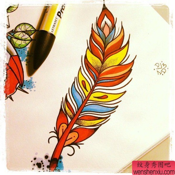 彩色羽毛文身手稿作品