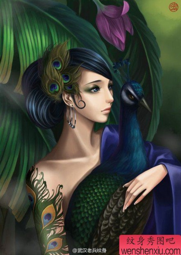 孔雀少女文身壁纸作品