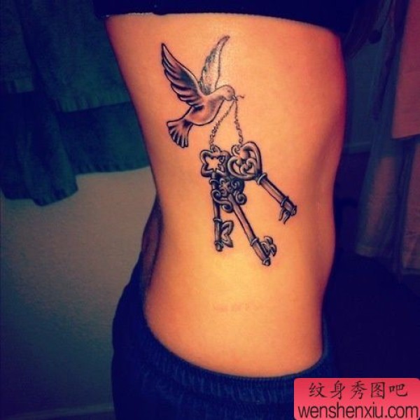 纹身图吧分享一张女性侧腰钥匙文身作品