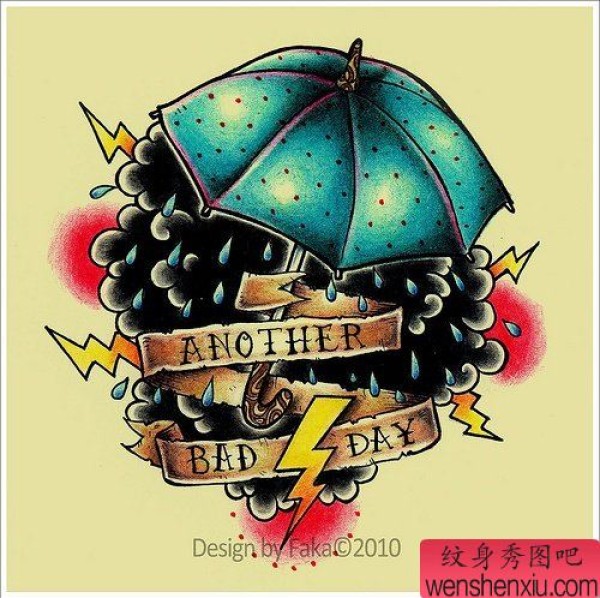 创意的雷阵雨文身手稿作品