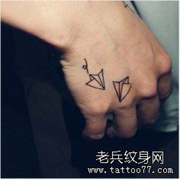手部小清新千纸鹤文身作品
