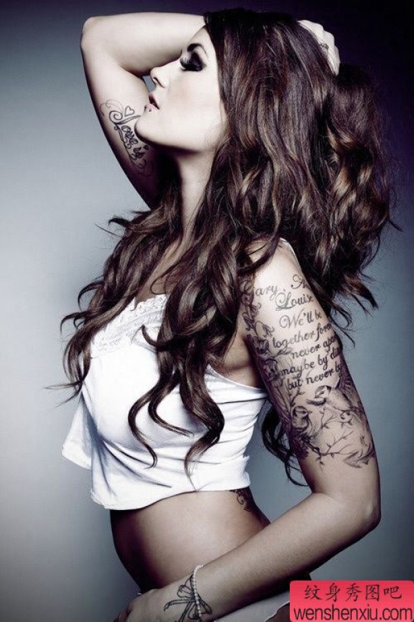 时尚女孩手臂字母文身作品