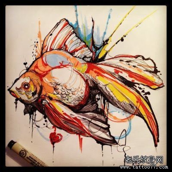 双鱼座纹身手稿_45张十二星座之双鱼手稿纹身图案
